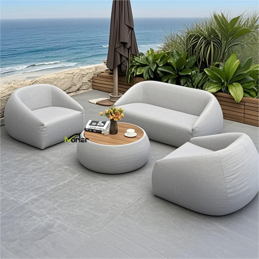 3.Sofá tapizado para exterior: la experiencia de comodidad de una persona perezosa, con cojines suaves y gruesos y materiales de secado rápido, lo que lo hace cómodo para recostarse o sentarse.